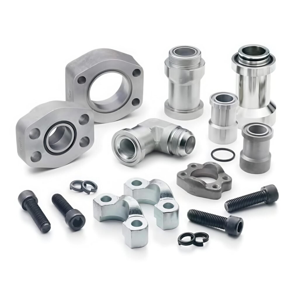 Split flanges are a type of hydraulic fitting designed for connecting pipes, tubes, and hoses in hydraulic systems. They are characterized by their two-piece construction, allowing for easy installation and removal around existing piping. The two halves are secured together with nuts and bolts, and an O-ring is used to create a tight seal, preventing leaks in high-pressure applications.